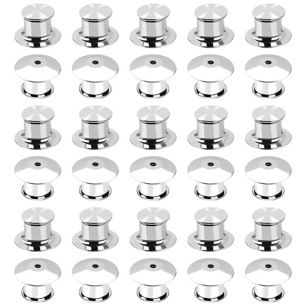 Metal Locking Pin Backs, 30 Pcs Keepers Locking Clasp for Uniform Badges, Hat, Jewelry Making (Silver)