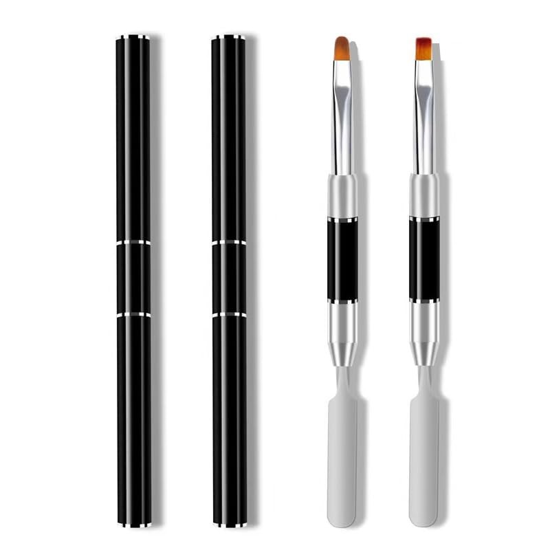 Metal Nails Nail Brushes, 2 Pieces Nail Art Brushes, Dual-Ended Polygel Brush & Picker Tool, Magic Extender Gel Tool for UV/LED Nail Art, Acrylic Nail Extension, Extensions Builder, Black