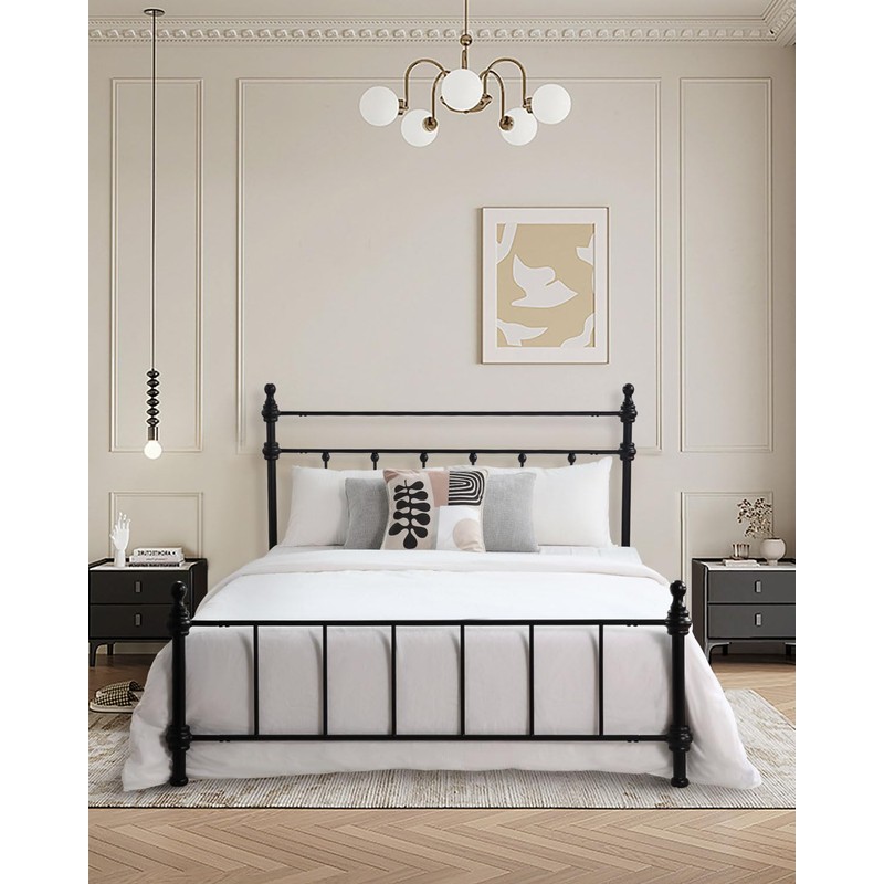 - 【Elegant Retro Design】This bed frame queen size showcases a vintage luxury Roman column design that adds a touch of sophistication to any bedroom decor, making it a centerpiece of style and charm.