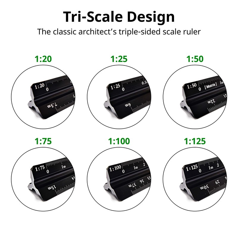 - ✅6 METRIC SCALES: Our metric scale ruler includes 6 of the most commonly used scales: 1:20, 1:25, 1:50, 1:75, 1:100, 1:125. No need to waste time figuring out how to measure each increment. Our triangular scale ruler is easy to use and understand, regardless of your profession or skill level.