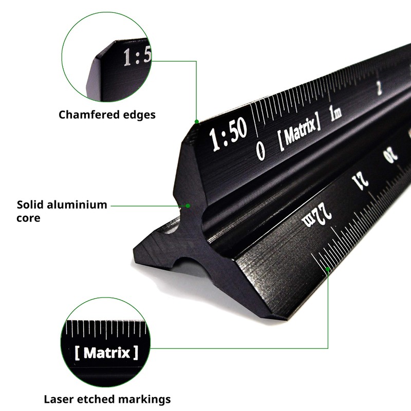 You have come to expect the best form Matrix and that's exactly what you get with the Matrix Triangular Architect Scale. Reliable construction and accurate performance. Let the all-in-one Matrix 30cm Triangular Architect Scale Ruler be your instrument for the most optimal accuracy and precision on your next project.
