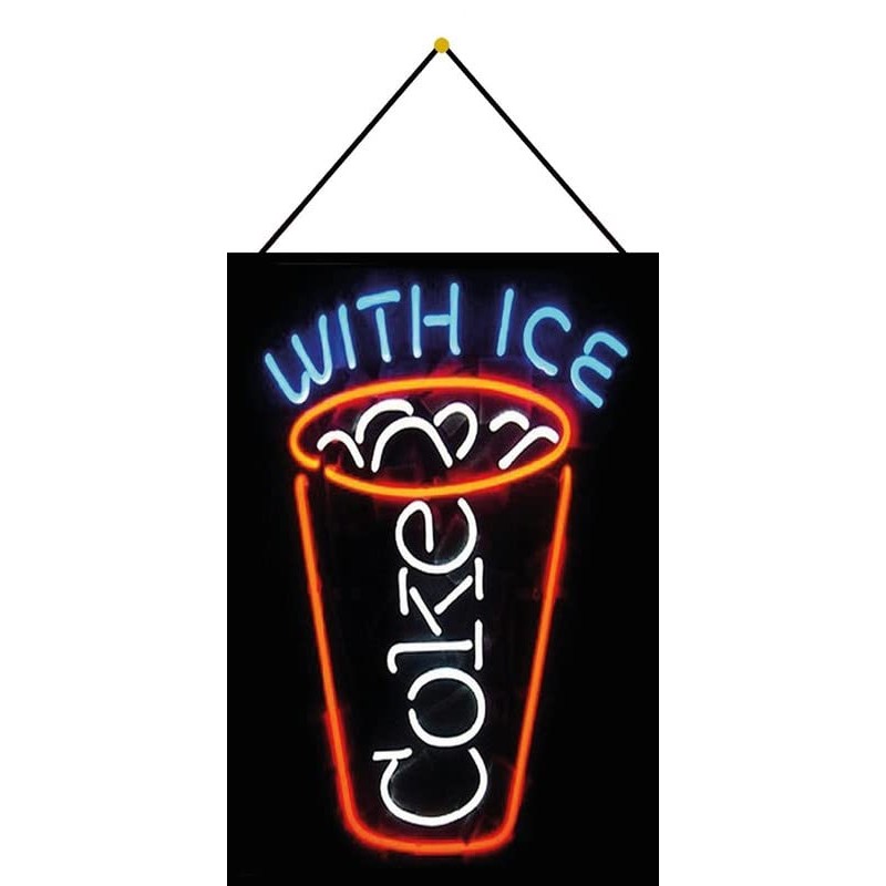 Metal Sign 20 x 30 cm with Cord Coke with Ice Neon Style Cocktail Bar Tin Sign