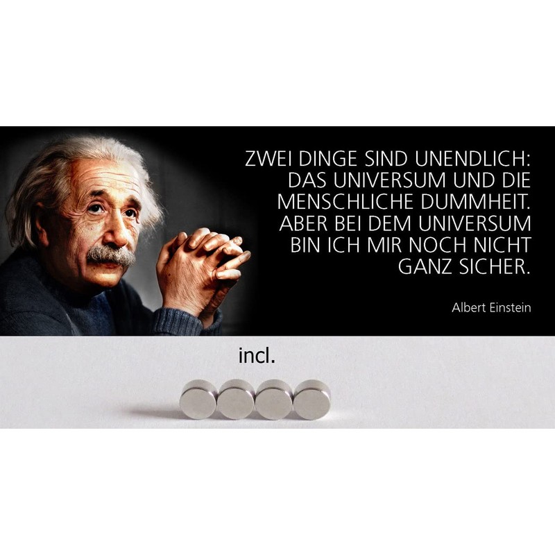 Metal Sign 27 x 10 cm with 4 Magnets Einstein Zwei Dinge sind unendlich Sayings Tin Sign
