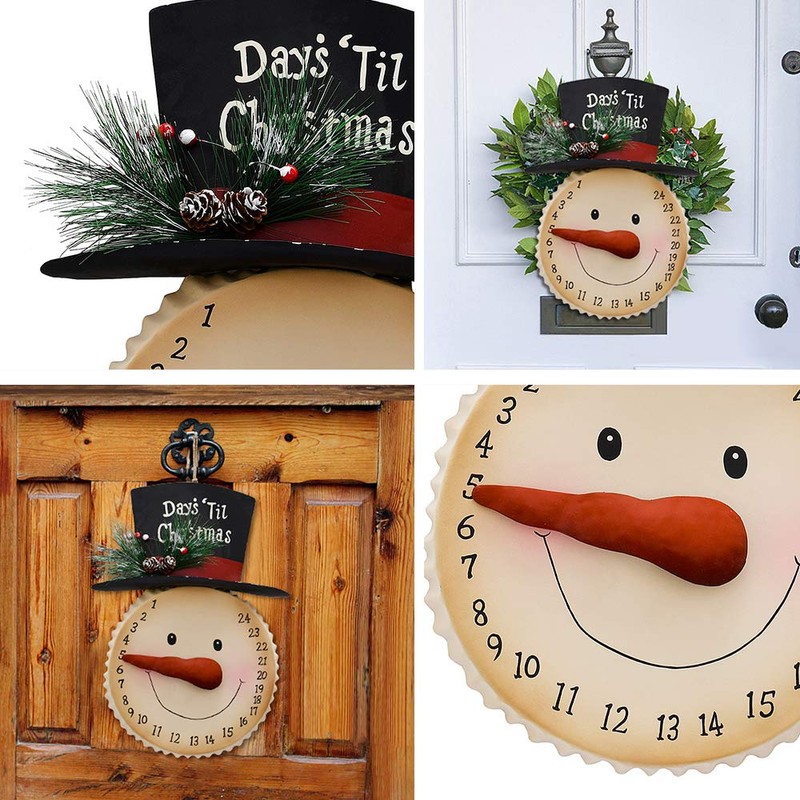 - Snowman countdown calendar is full of Christmas elements, the hat is decorated with some pine needles, berries and pine cones. It will complement any Christmas decor theme and is sure to will definitely bring the Christmas spirit into your home.