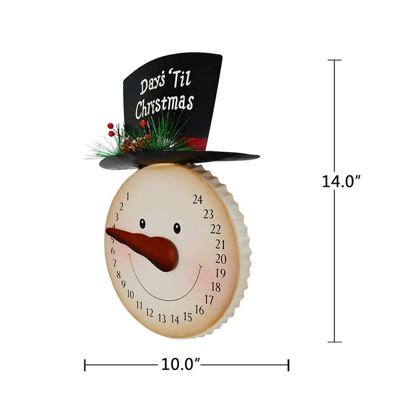 - This Christmas snowman calendar measures 10x14", and is made of durable metal material,which can easily cope with Christmas season year after year. Suitable for hanging indoors outdoors.