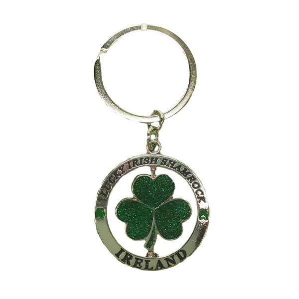 Metal Spinner Keychain With Green Glitter Lucky Shamrock
