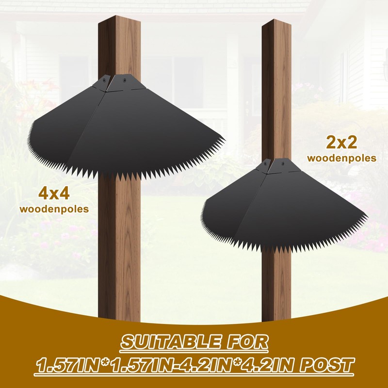 Metal Squirrel Baffles with Spikes for 4x4 Posts: 19 Inch Adjustable Opening Size Squirrel Guard for Wooden Pole Outdoor,Hanging Baffle Protect Bird Feeders & Pole Mount from Raccoon Squirrels Rodents