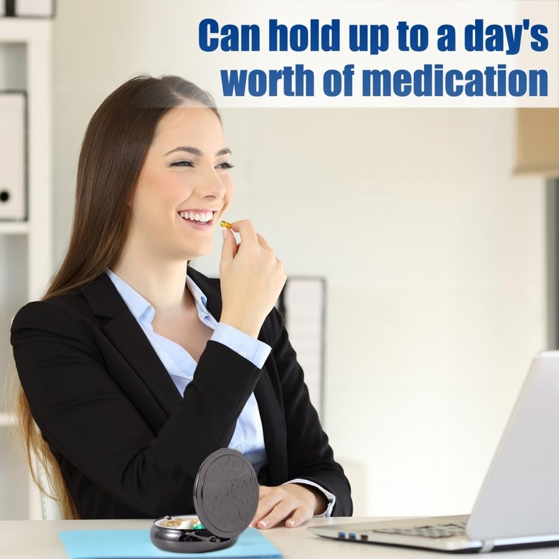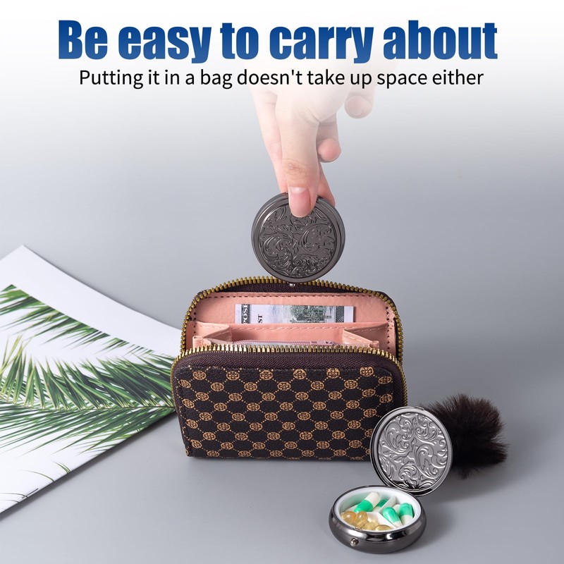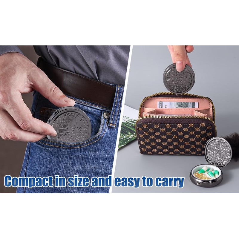 Metal Three Grid Pill Box, Travel Takeaway Pill Box, Mini Metal Pill Box with Patterned Surface (1 Pack Black)