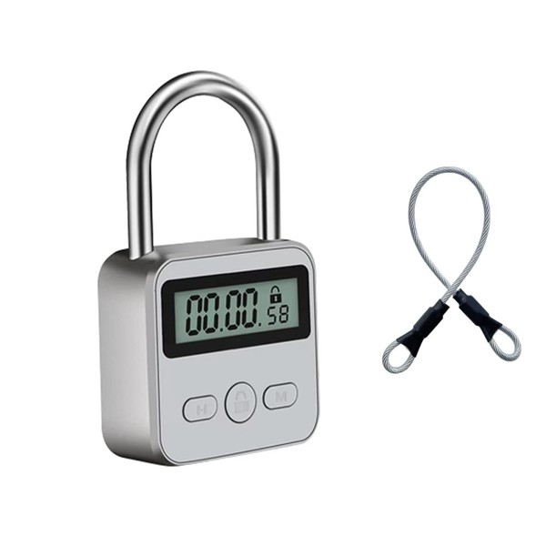 Metal Timer Lock, LCD Display Multi-Function Electronic Time, 99 Hours Max Timing, USB Rechargeable Timer Padlock Timer Padlock Timer Lock (Silver)
