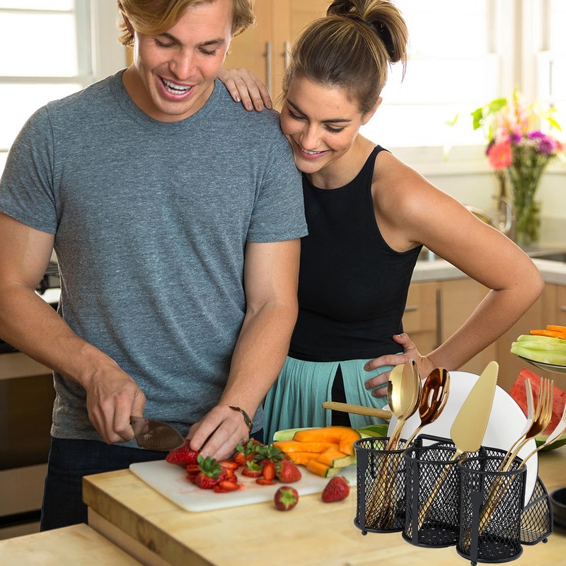 - 😊✔ [Saves Space and Organized Kitchen Countertops] The flatware caddy for countertop can keep all your cutlery neatly in one place, eliminating worries about messy utensils in drawers or on tabletops. It saves space, reduces clutter, and helps maintain an organized countertop. Additionally, it features a weighted base at the bottom to prevent easy tipping.