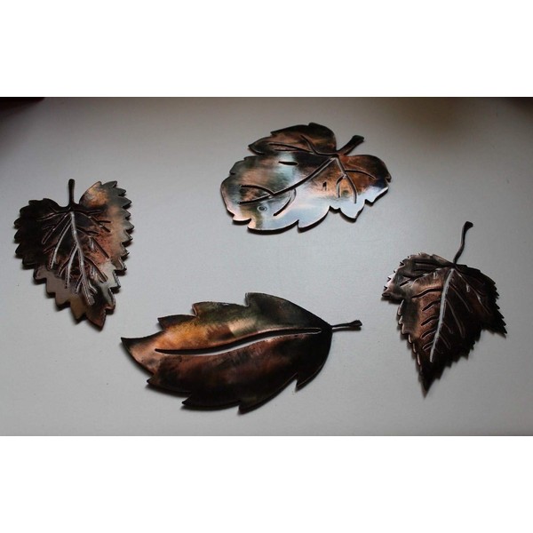 METAL WALL ART LEAFS (4) SMALL COPPER/BRONZE PLATED