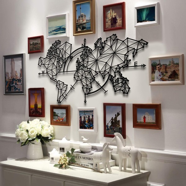 A world metal map doesn’t need to be boring. This abstract wall panel is here to prove it. A compass was added to inspire you to find your way and to plan your next journey – even if it means daydreaming in your couch! And don’t worry: this wall panel is easy to install. It will be decorating your place a few minutes after you open the package. Material – Metal Color – Black Thickness – 1.5 MM For indoor use only Size 100 x 60 cms ( 39.3 x 23.6 inches )