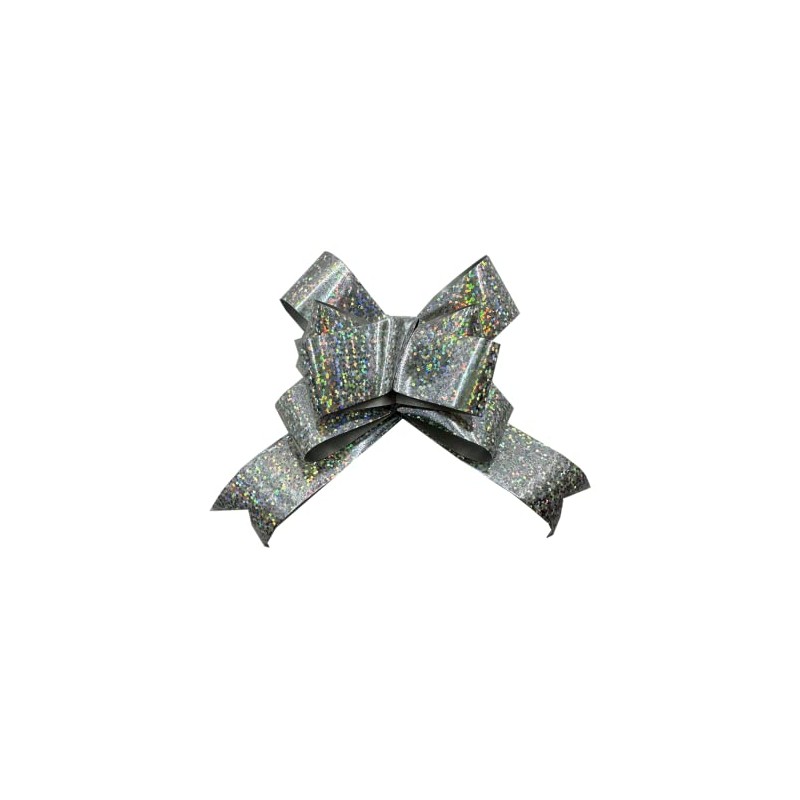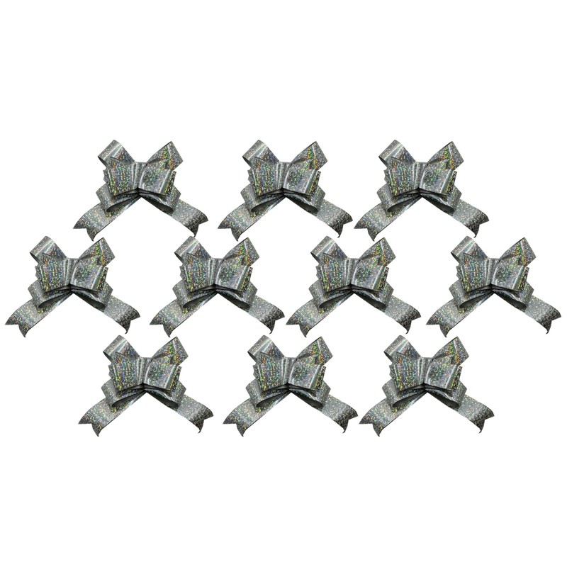 Metallic Gift Wrap Pull Bows - 4" Wide, Laced Ribbon Pull Butterfly Flower Bows for X-mas Gifts and Presents, Set of 10 (Holographic Silver)