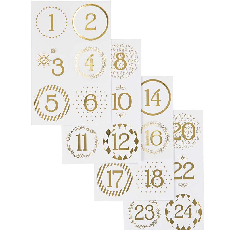 Metallic Gold Scandinavian Style Christmas Advent Number Stickers