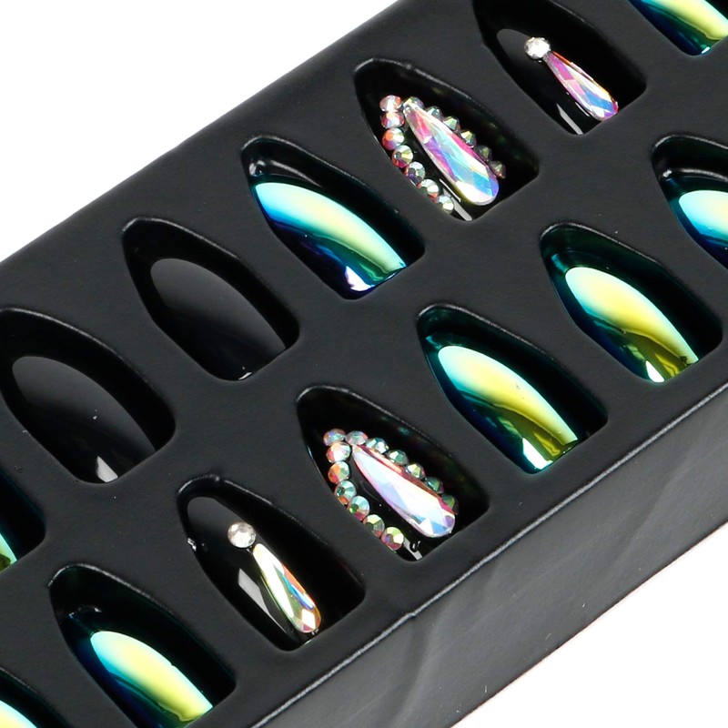 - Metallic Mirror Effect 3D Shining Stone Long Almond Design Press On Nail Tips 24 Nails