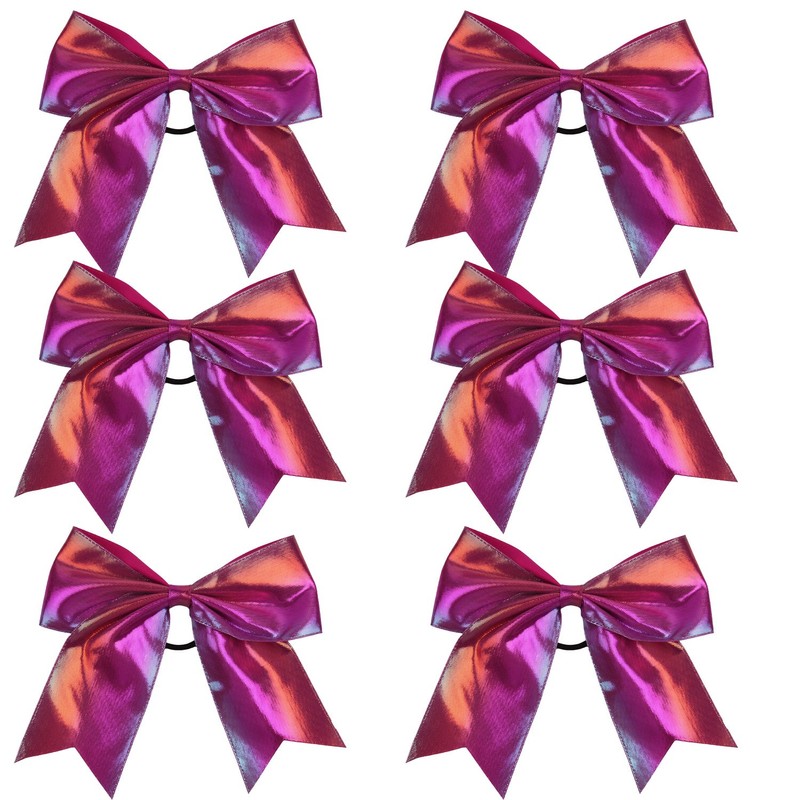 Metallic Sequin and Holographic 8 Inch Cheer Bow Cheerleader Cheerleading Jumbo Cheer Bow Hair Tie (Hot Pink Holographic)
