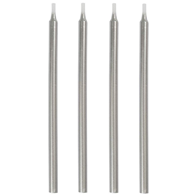 Your birthday cake will shine with our stylish Silver Birthday Candles. These bright birthday candles measure 5" high and are an easy way to add elegance to any birthday cake. Coordinate these Silver Birthday Candles with other Silver party decorations and printed or solid party supplies from Unique. Silver Birthday Candles are sold in a package of 12.