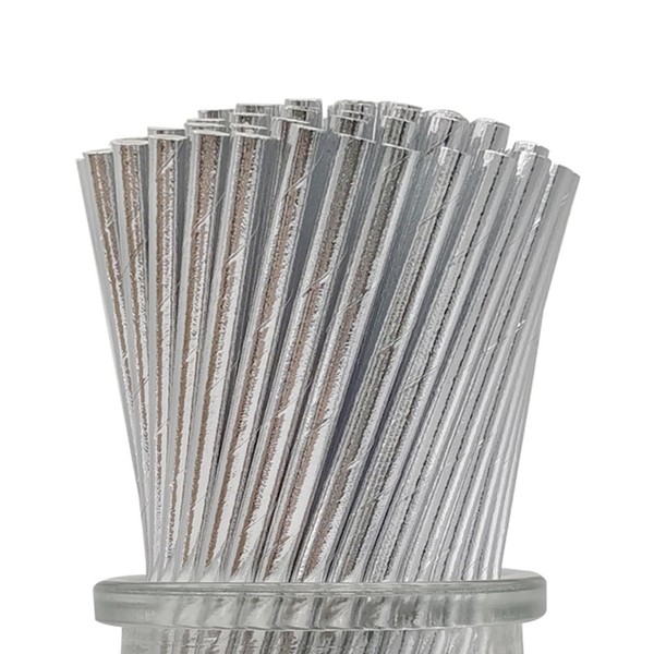 Metallic Solid Silver Party Straws, Disposable Durable Silver Paper Drinking Straws Bulk for Wedding Party Decoration, 7.75" x 0.24", Pack of 100