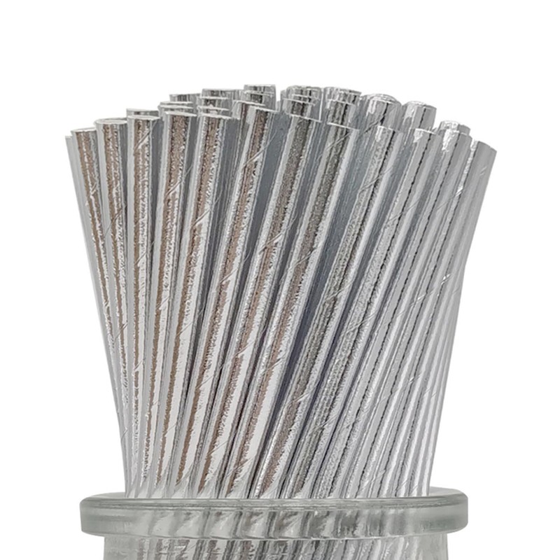 - Color and Size: 100 pcs solid silver paper straws are packed in a kraft paper box. Each recyclable paper drinking straws has a length of 19.7 cm / 7.75 inches and a diameter of 0.6 cm / 0.25 inches. Suitable for most drinking cups and containers