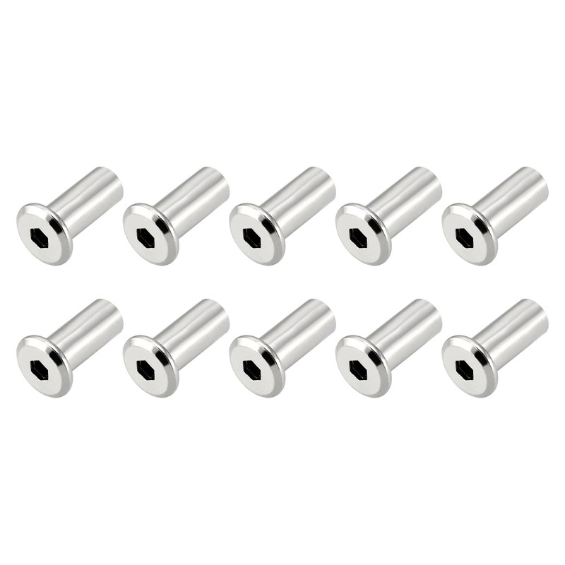 METALLIXITY 10pcs Rivet Hex Socket Head Nuts (M8x20mm) Nickel Plated Iron Rivet Cap Insert Nuts - For Furniture, Bookshelf, Wardrobe, Silver Tone