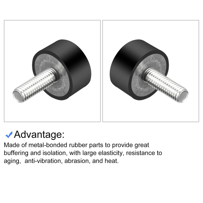 METALLIXITY 2pcs Rubber Stud M6 Screw Rubber Cylindrical Anti-Vibration Mount Anti-Vibration Bolt for Fitness Equipment Air Compressor Gasoline Engine