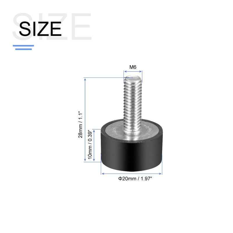 - [2]: Specification - Rubber Size: 20 x 10 mm (D*H); Male Thread Size: M6 x 18 mm (D*L); Total Size: 28 mm x 20 mm (H x D)