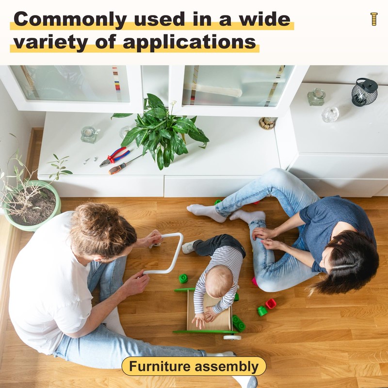- APPLY TO - Barrel nuts and flat head screws with wrench used for assembly, connecting various components like screws, nuts, and bolts. They ensure stability by connecting furniture frames, supports, and structures.