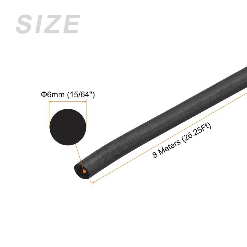 METALLIXITY Foam Rubber Weather Seal Strips (6 mm Diameter x 8 m Length) 1 Piece EPDM Rubber Round Seal Strips - for Home Repair Door Black