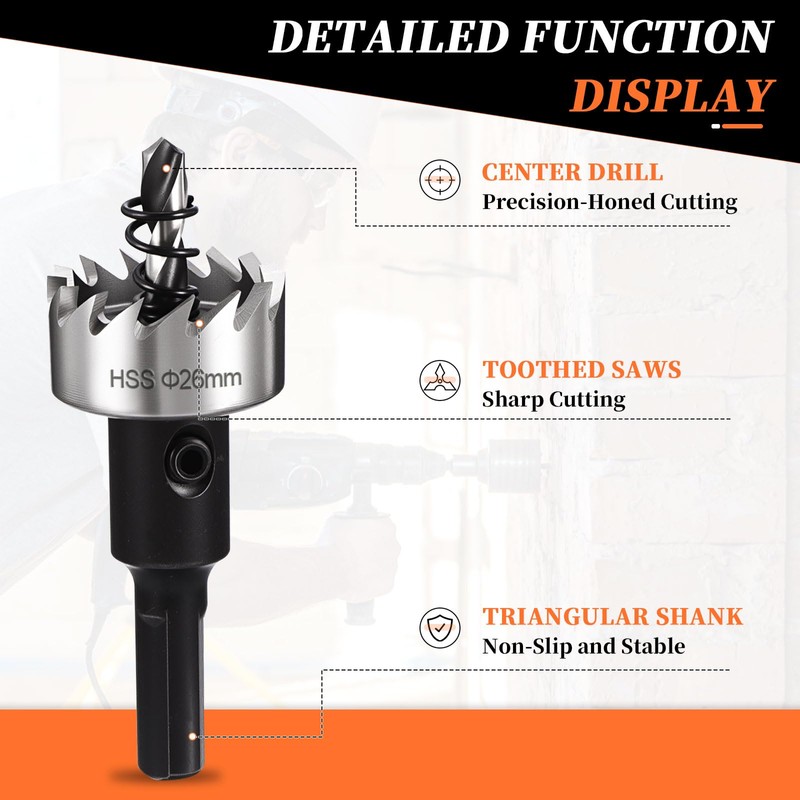 - [1]APPLY TO - 4241 High Speed Steel Hole Saw Kit is engineered for drilling soft metal, wood, and synthetic materials including pvc, plastic, and with specific compatibility for structural alloys such as low-carbon steel, brass, and aluminum alloys. It operates effectively on hand-held electric drills, bench-mounted vertical drills, and portable magnetic base drills, serving critical functions in automotive maintenance, metal fabrication, and carpentry renovation projects