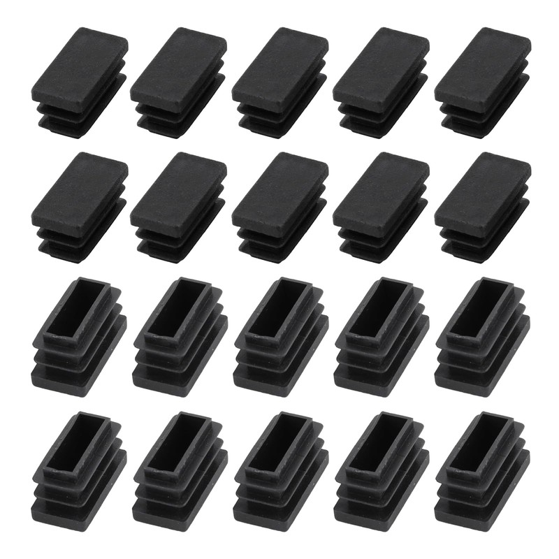 METALLIXITY Rectangle End Caps (26 x 13mm) 40Pcs, Plastic Rectangle Tube Inserts Threaded End Blanking Caps Protector - for Furniture Table Chair Legs, Black