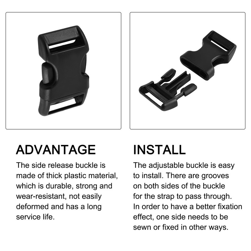 - ADVANTAGE - The side release buckle is made of thick plastic material, which is durable, strong and wear-resistant, not easily deformed and has a long service life.