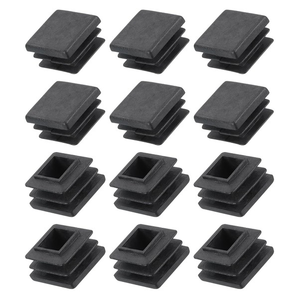 METALLIXITY Square Tube End Cap(20 x 20mm) 12Pcs, Plastic Plugs Insert End Caps Pipe Cap Cover Threaded End Blanking Caps Protector - for Square Tube Fence Furniture Table Chair Legs, Black