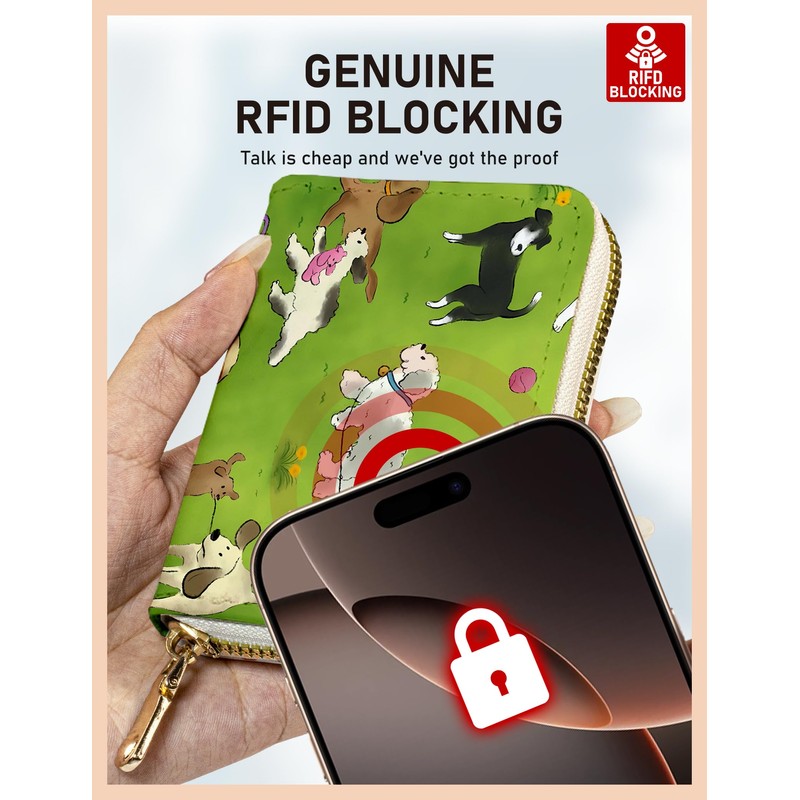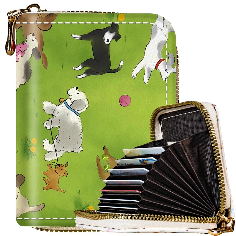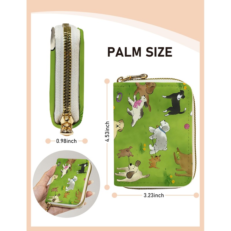 METALPHA Credit Card Holder for Women, Aesthetic RFID Blocking Zippered Small Credit Card Wallet, Cute Mini Leather ID Cardholder Wallets, Dog Park, Small Credit Card for Women With Print and Zipper