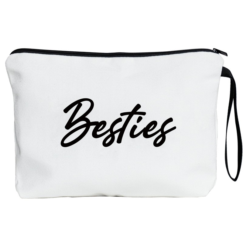 METALPHA Cute Makeup Bag for Purse Zipper Canvas Make Up Bag Large Pencil Pouch Bag with Wrist Strap, Cosmetic Bags Makeup Pouch, besties, Canvas Makeup Bag With Zipper and Wrist Strap and Lining