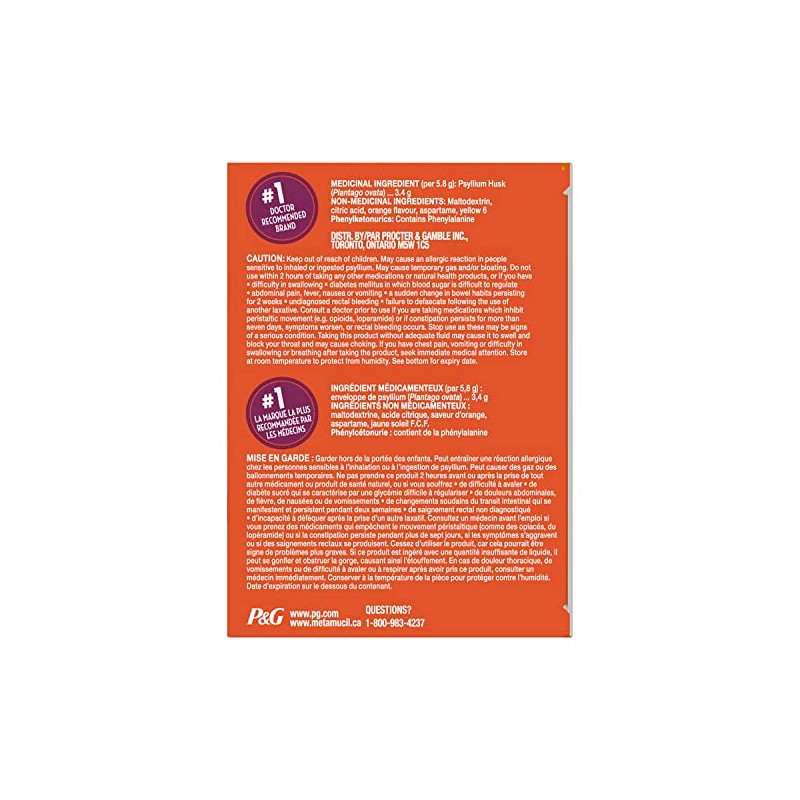 Metamucil Metamucil, Daily Psyllium Husk Powder Supplement Packets, Sugar-Free, 4-in-1 Fibre for Digestive Health, Orange Smooth Flavored Drink, 44 Servings