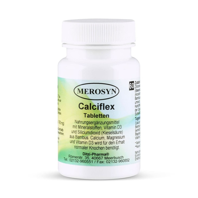 Metapharm Merosyn Calciflex contains substances that bind and enhance bone density, such as calcium, Vitamin D3, magnesium and Bamboo.