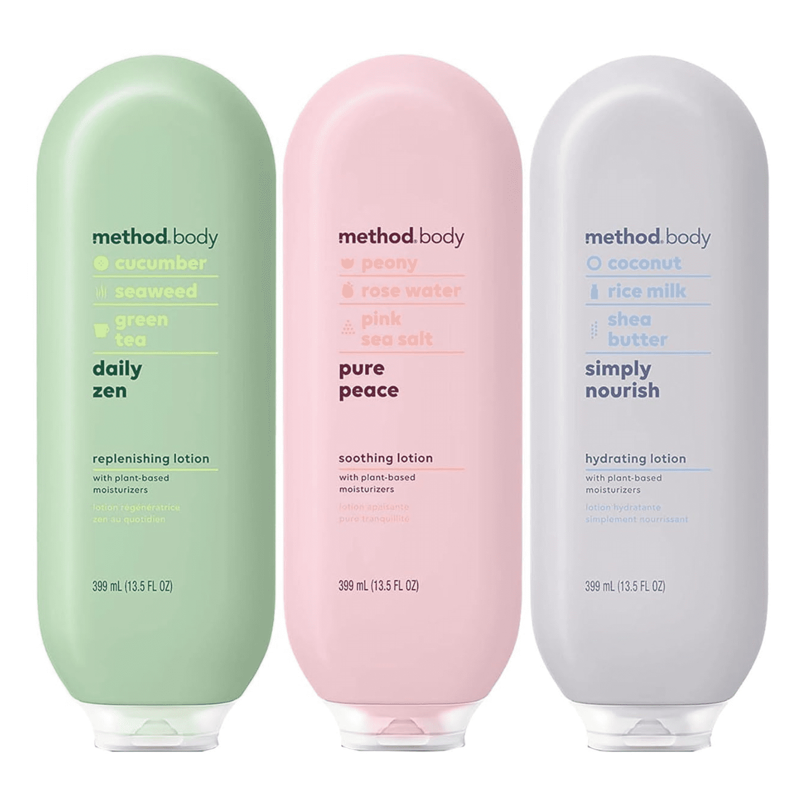 Method Daily Lotion 3 Scent Variety, Daily Zen-Pure Peace-Simply Nourish 13.5oz