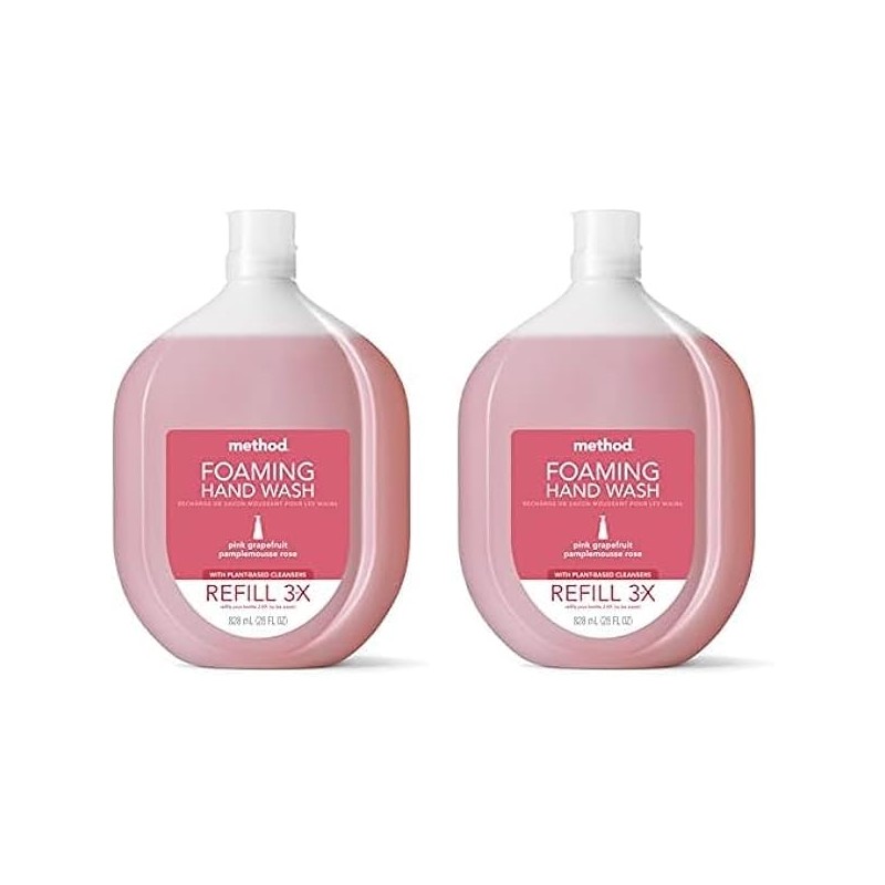 Method Foaming Hand Soap, Refill, Pink Grapefruit, Recyclable Bottle, Biodegradable Formula, 28 oz, (Pack of 2)