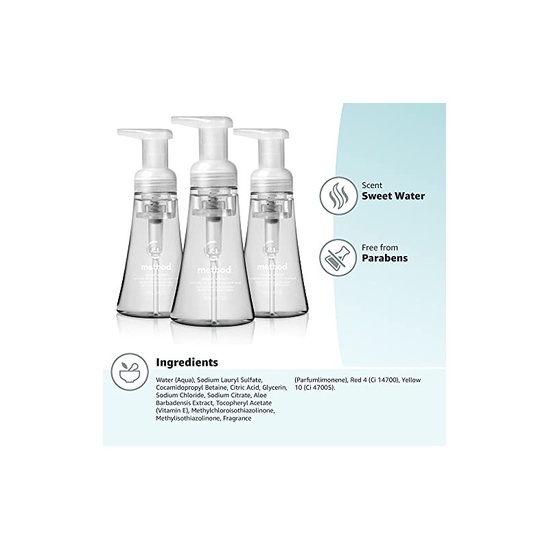 Method Method Foaming Hand Soap, Sweet Water, Paraben and Phthalate Free, Biodegradable Formula, 10 fl oz (Pack of 3)