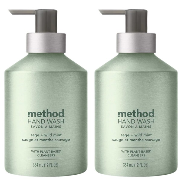 Method Premium Gel Hand Soap, Reusable Aluminum Bottle, Sage + Wild Mint, 12 oz (Pack of 2)