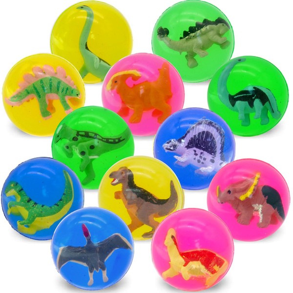 METHPY 12 Pieces Bouncy Balls for Kids with 3D Dinosaur Inside, Dinosaur Party Favors, 1.7inch Dino High Bounce Balls, Dinosaur Party Favors and Goodie Bag Fillers for Kids,Stuffers for Birthday Party