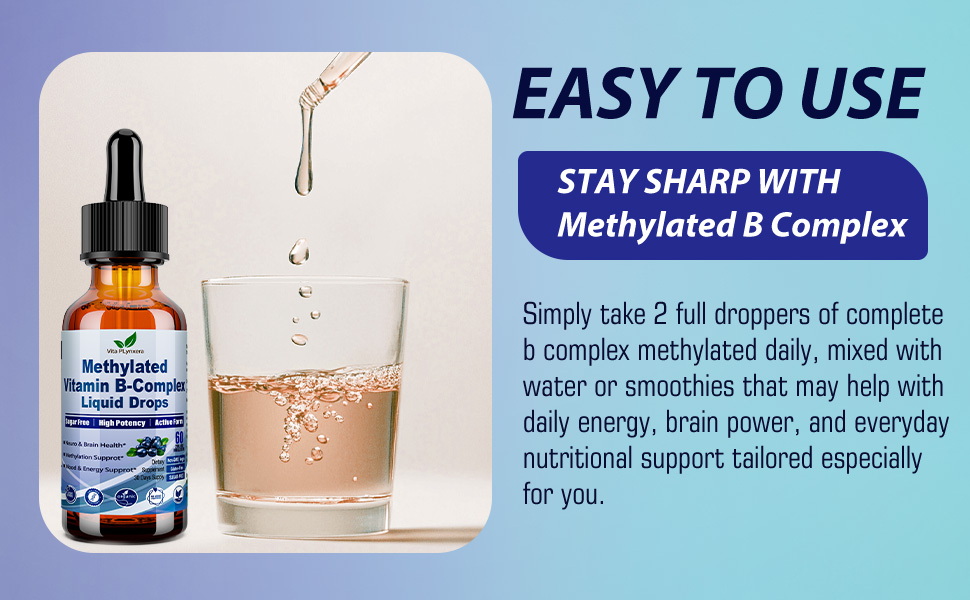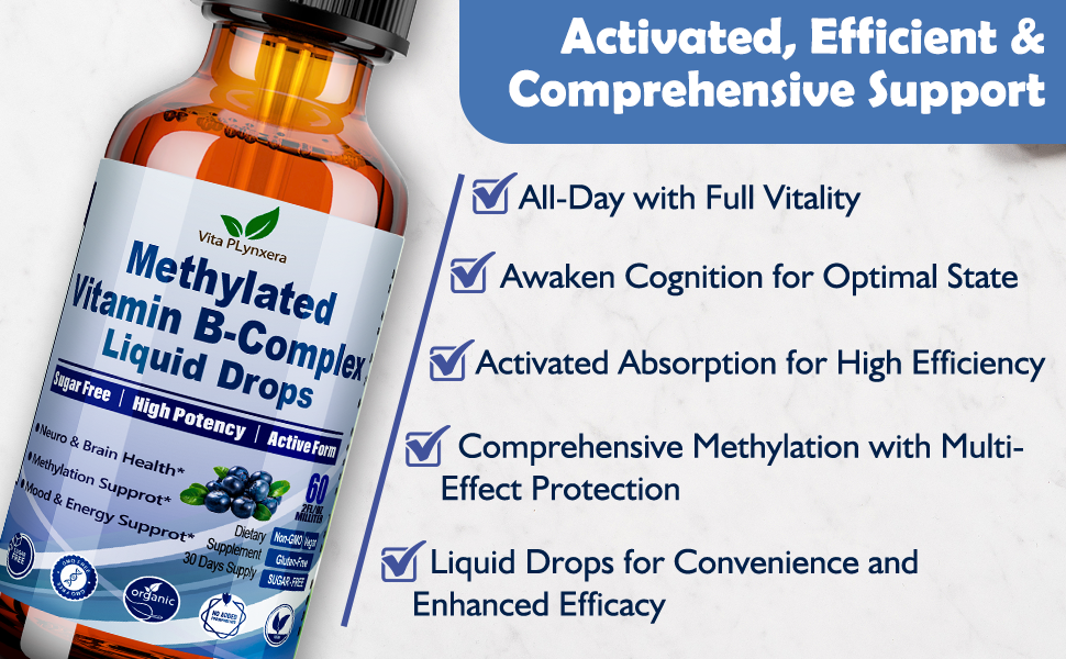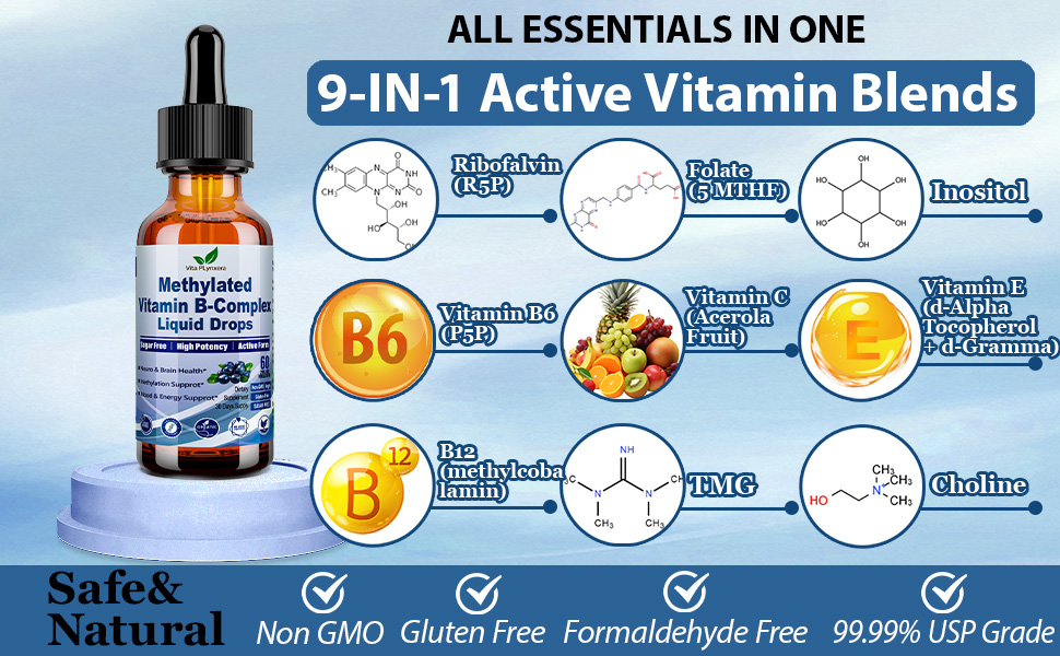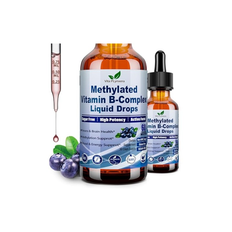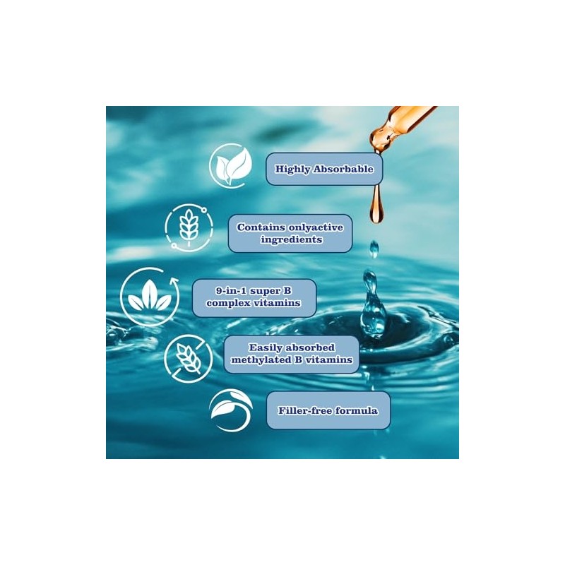 Methylated B Complex Liquid Drop Complete 9-in-1 Methyl B Vitamins w. B12 Met...