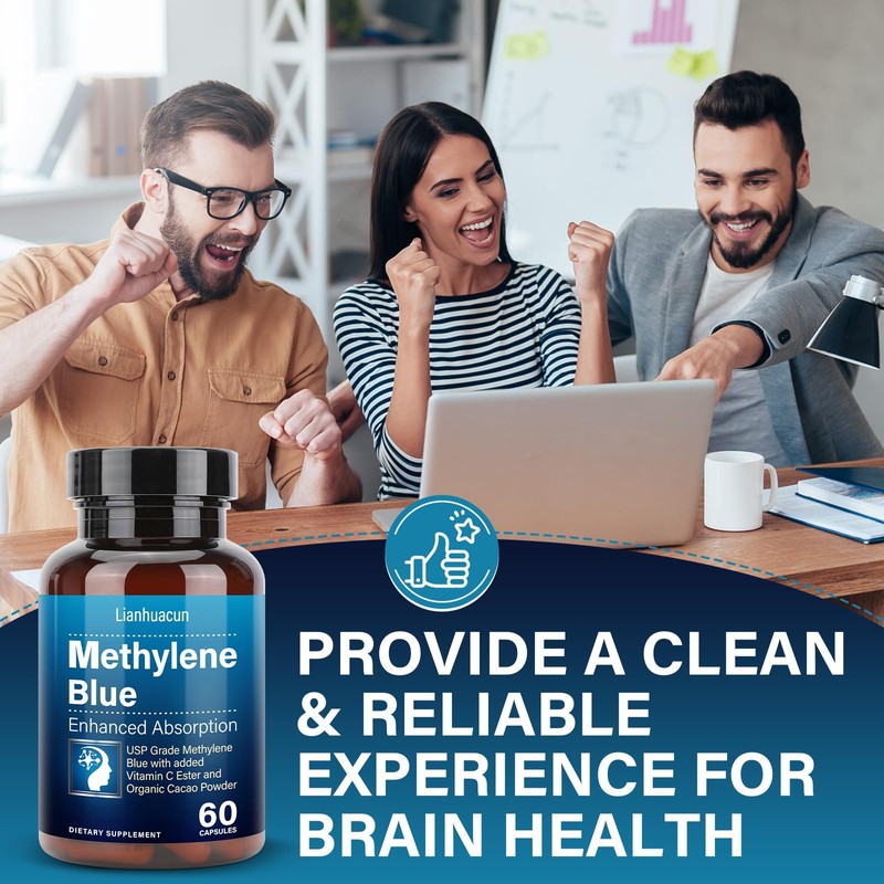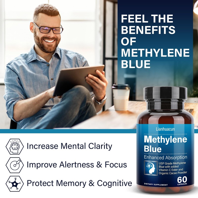 - IMPROVED ALERNESS & CONCENTRATION: Use our methylene blue capsules to light up your day! This methylene blue for human can effectively keep your brain sharp and increase productivity throughout the day.
