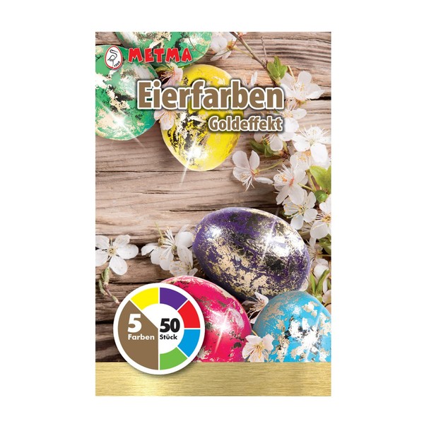 Metma B-593 - Gold Effect Liquid Egg Colours Yellow Purple Red Blue Green Shellac with Glove Gold Foil for Approximately 50 Easter Eggs Easter
