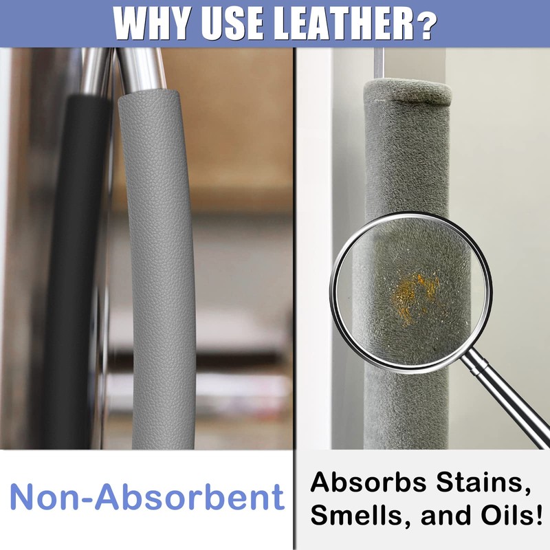 - 【Leather is Better!】KEEP TRULY CLEAN - Leather kitchen appliance handle covers will not absorb smudges, food stains, oil, etc. We use PU leather on our covers, which won’t collect dirt and oil like other fabrics. Easy to wipe clean!