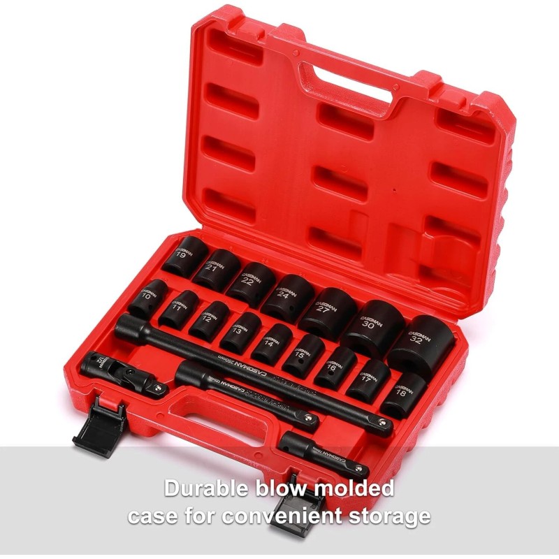 Metric 1/2-Inch Drive Impact Socket Set, 10mm-32mm - User-Friendly & Versatile