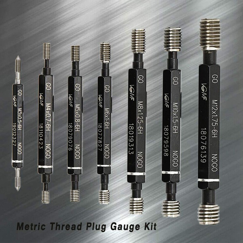 Metric Thread Plug Gauge Kit, TBVECHI 7 Pcs Metric Thread Plug Gauge Kit M3 M4 M5 M6 M8 M10 M12 High-precision Thread Detection Tool