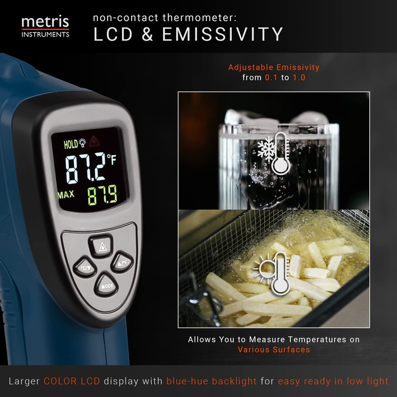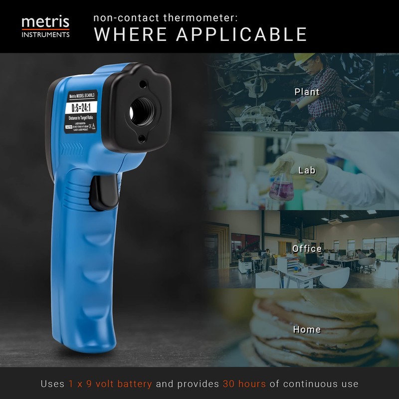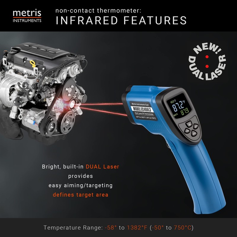 Metris Instruments Digital Infrared Thermometer Gun Laser Temperature Gauge for Cooking, Grill, Pizza Oven, HVAC Tools with Dual Lasers -58 to 1382 (-50 to 750 C) 24:1 D:S Ratio, Model EC400L3