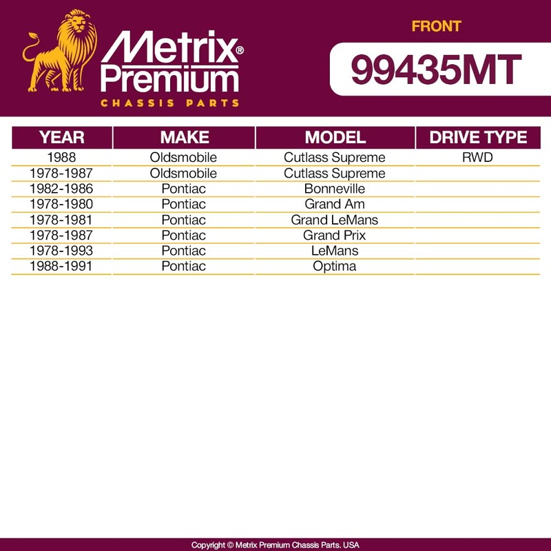- A BRAND YOU CAN TRUST: Approved quality with an outstanding value. Engineered and manufactured in Turkey. All Metrix Premium Chassis Parts come with a 3 Year / 36,000 miles Limited Warranty from date of installation