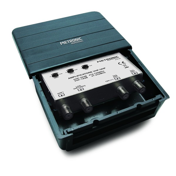 - 2 UHF inputs - UHF + VHF, 2 TV outputs (1 output 12 V)